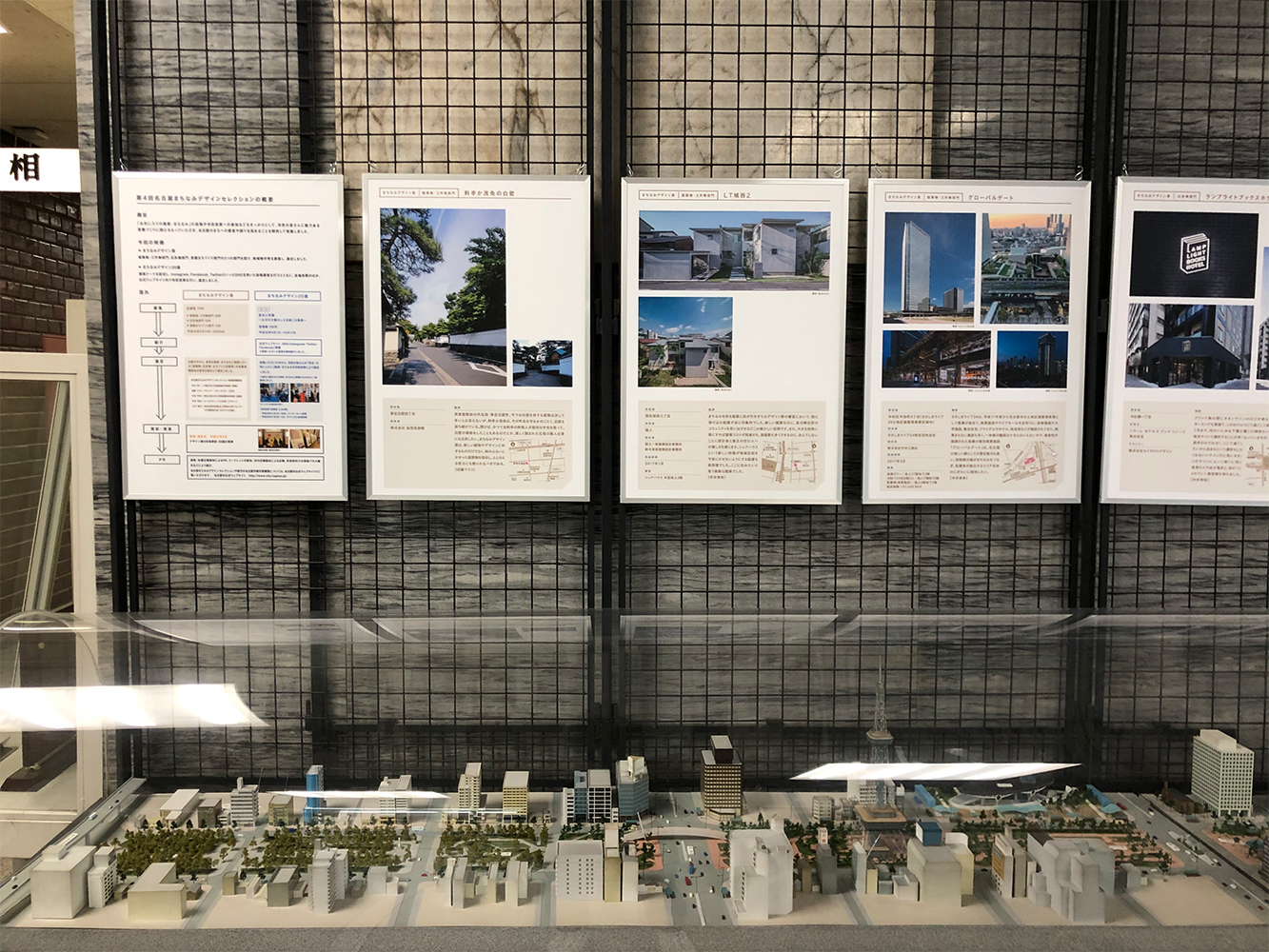 ご案内後、名古屋市役所へ現在計画中の物件の事前相談に伺ったところ、西庁舎入口に「まちなみデザインセレクション」のパネルが展示されていました。多くの方々に見ていただける場所なのでうれしいかぎりです。これをきっかけに新しいお仕事の問い合わせがあるといいなと期待をしつつ、ほくそえみながら帰ってきました。