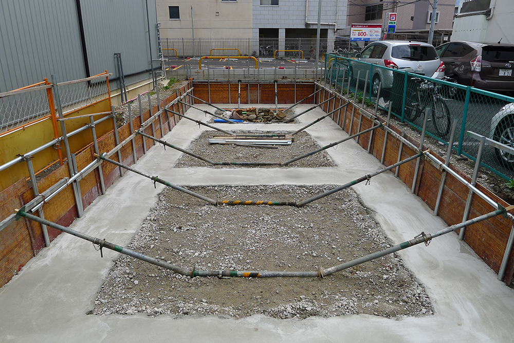 秋晴れの気持ちのいい日になりました。掘削工事も終わり、基礎の位置出しをするための捨コンも打ち終わりました。いよいよ基礎をつくっていきます。 設備用の配管や桝の位置などが基礎と関係してくるため、打ち合わせにてお施主様にも最終確認をしていただきました。 大事な基礎なので、気を引き締めて参ります!