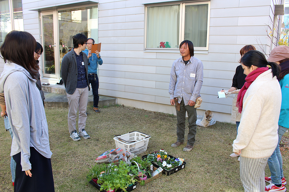 本日は夏に引き続き、植真 太田造園の太田ご夫妻を講師にお招きし、入居者のみなさんと「畑ワークショップ」を行いました。 今回は冬から春に向けて収穫できる野菜を中心にご指導いただきました。