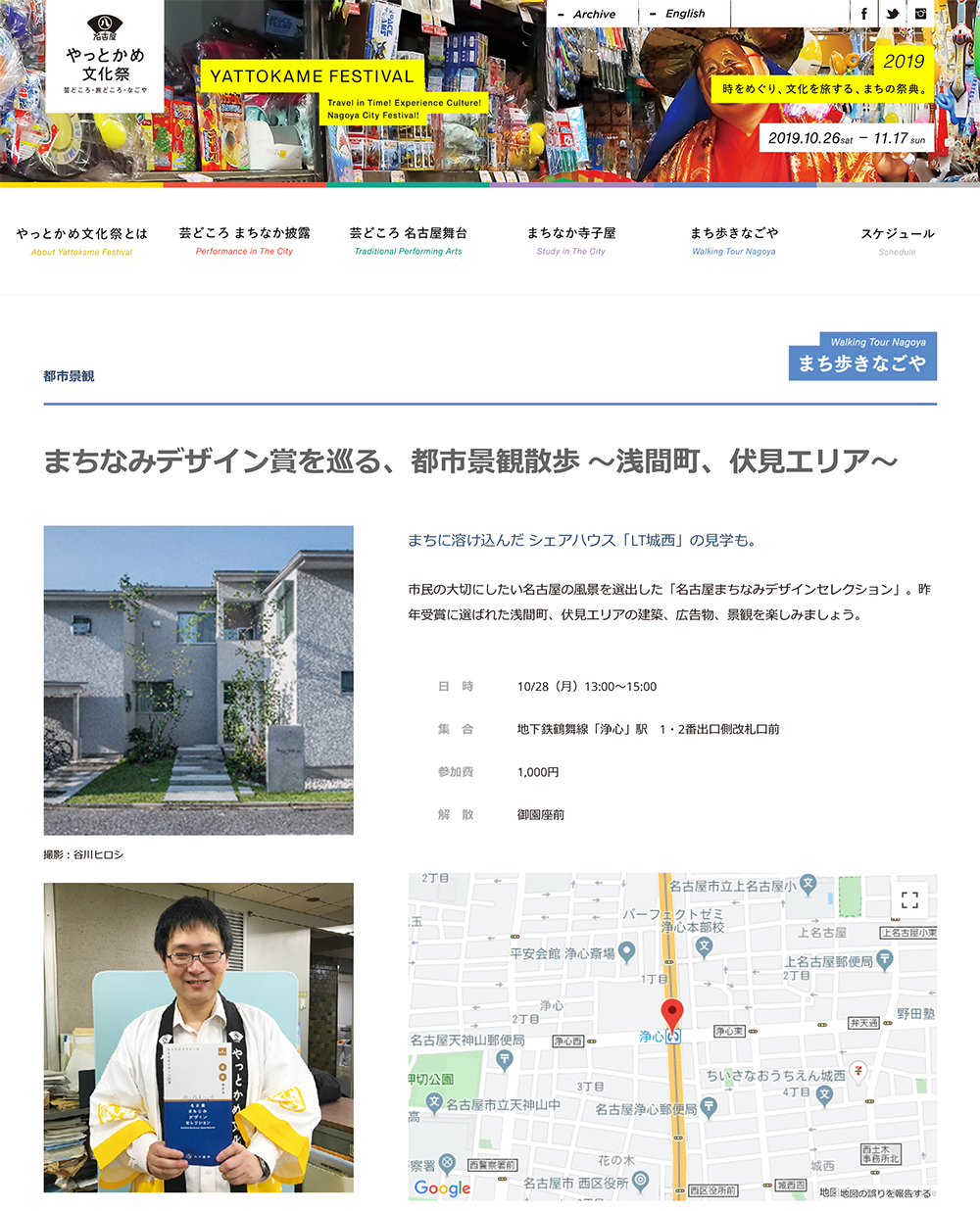 「LT城西2」が、2019年10月26日~11月17日に開催される「やっとかめ文化祭」のイベント、「まち歩きなごや」のツアーコースになりました。「まちなみデザイン賞を巡る、都市景観散歩 ~浅間町、伏見エリア~」としてLT城西2をご案内させていただきます。