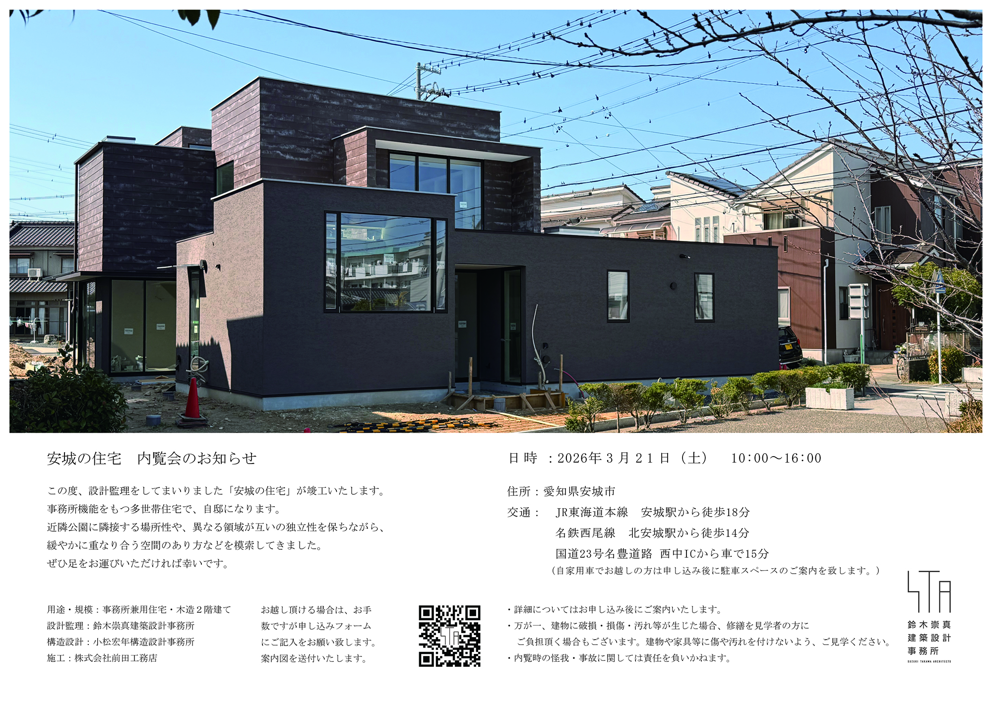 この度、設計監理をしてまいりました「安城の住宅」が竣工いたします。