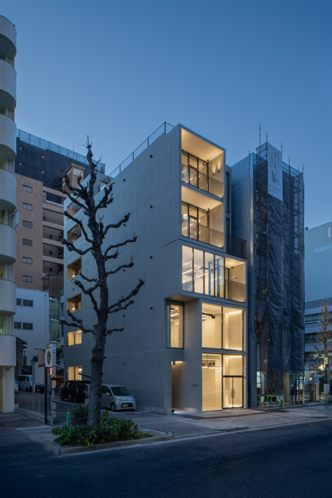 前面の全面ガラス開口と各所に配されたテラスは、内部の活動を街へと滲み出させ、画一的なオフィスビルにはない緩やかなインターフェースを創出する。垂直に積層された断片的な空間の連なりは、単なる床面積の集積を超え、都心における新たな建築と都市の応答形式を提示している。